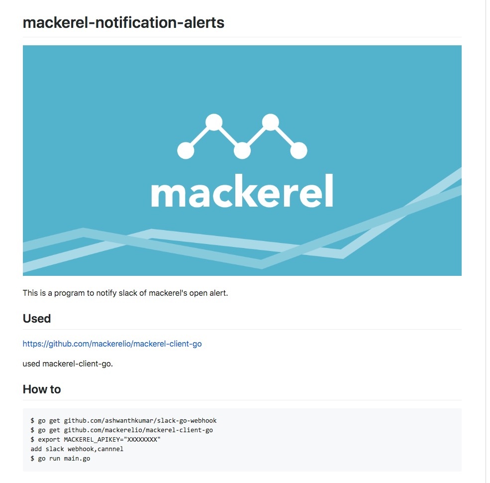 $ go get github.com/ashwanthkumar/slack-go-webhook $ go get github.com/mackerelio/mackerel-client-go $ export MACKEREL_APIKEY="XXXXXXXX" add slack webhook,cannnel |