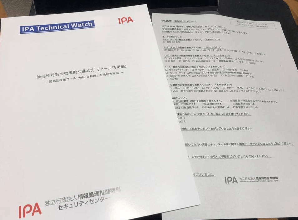 IPAさんは脆弱性対策や対応の進め方について30分講演していただきました。