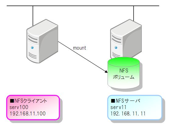 <サーバ側> yum install portmap yum install nfs-utils yum install nfs-utils-lib mkdir /nfs_dir #ここにマウントのファイルを作る chown nfsnobody:nfsnobody /nfs_dir #アクセス権許可 vim /etc/exports /nfs_dir クライアントIP/255.255.255.0(rw,root_squash) exportfs -ra #確認 # /etc/init.d/portmap start portmap を起動中:[ OK ] # /etc/init.d/nfslock start NFS statd を起動中:[ OK ] # /etc/init.d/nfs start NFS サービスを起動中:[ OK ] NFS クォータを起動中:[ OK ] NFS デーモンを起動中:[ OK ] rpcinfo -p 起動確認 chkconfig portmap on chkconfig nfslock on 起動 chkconfig nfs on 自動起動 |
