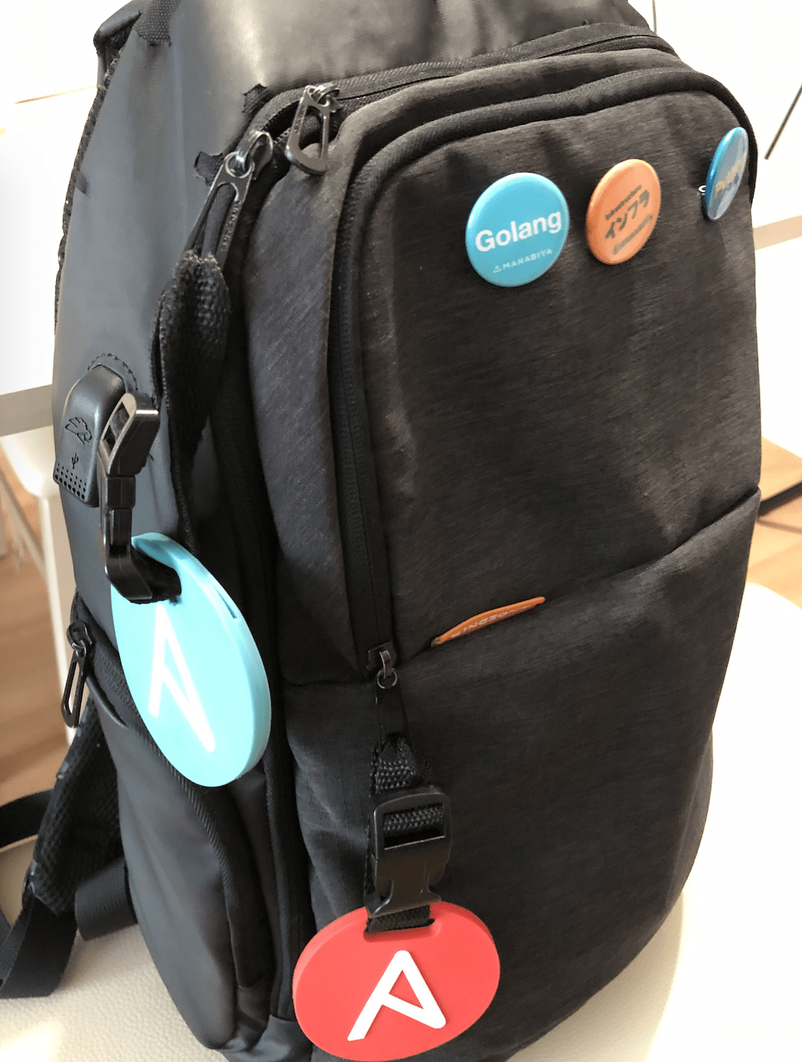 懇親会のAnsible飯が最高でした!Ansible初心者さんやマスターなどにもコミュニケーションできたので楽しかったです!個人的にRedhatさんと繋がったのが最高!ノベルティとしてキーホルダーをもらいました。これでリュックがカオスに… 運営者さんお疲れ様でした!とありがとうございました!!