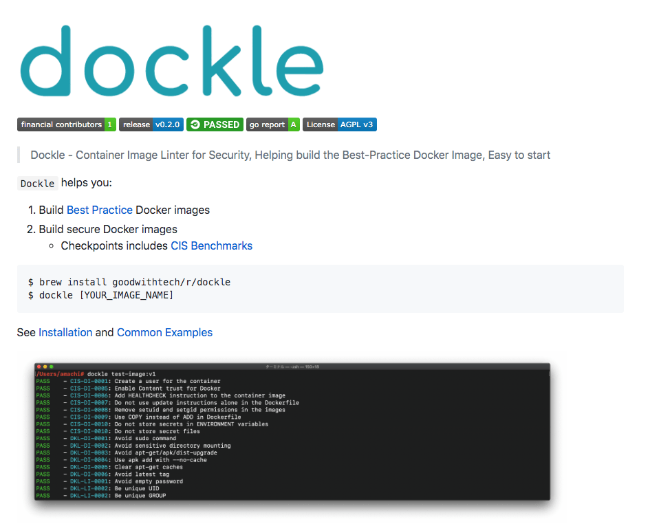 - CISベンチマーク、Dockerベストプラクティスに基づいたイメージなのかチェック