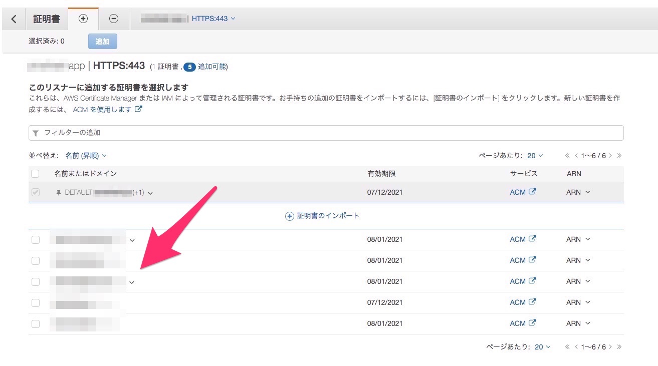 AWSを利用してバーチャルホストでの複数ドメインアクセスからhttpsで処理したい場合はALBでの443リスナーにACMのSSL証明書を以下のように指定すれば可能になります。