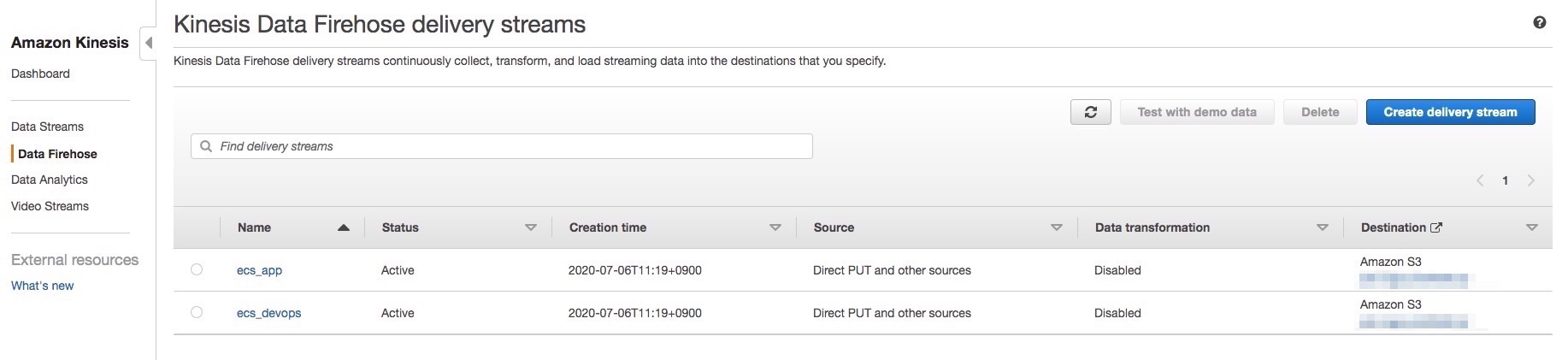 - Kinesis Data Firehose delivery streams