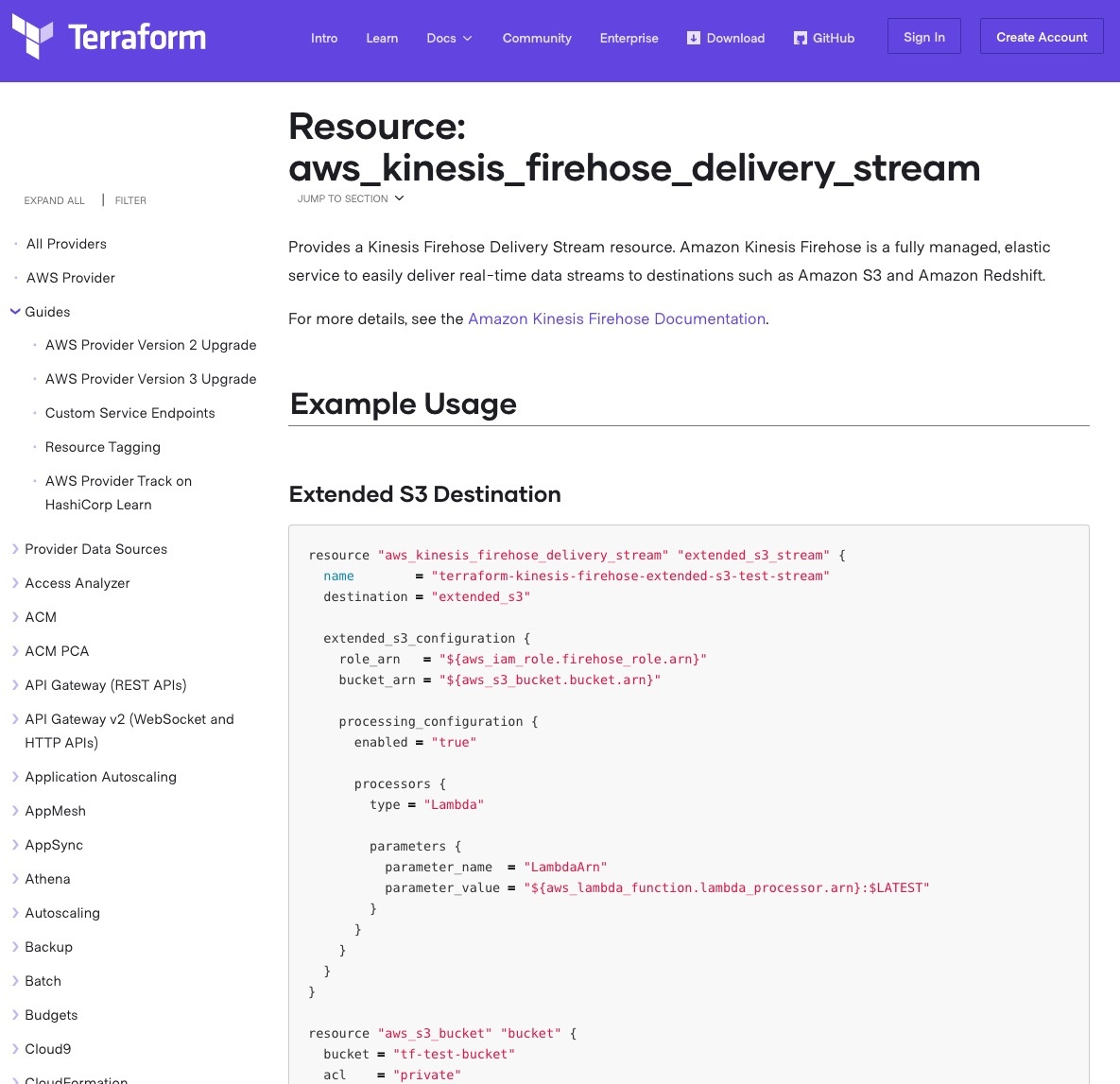 https://www.terraform.io/docs/providers/aws/r/kinesis_firehose_delivery_stream.html