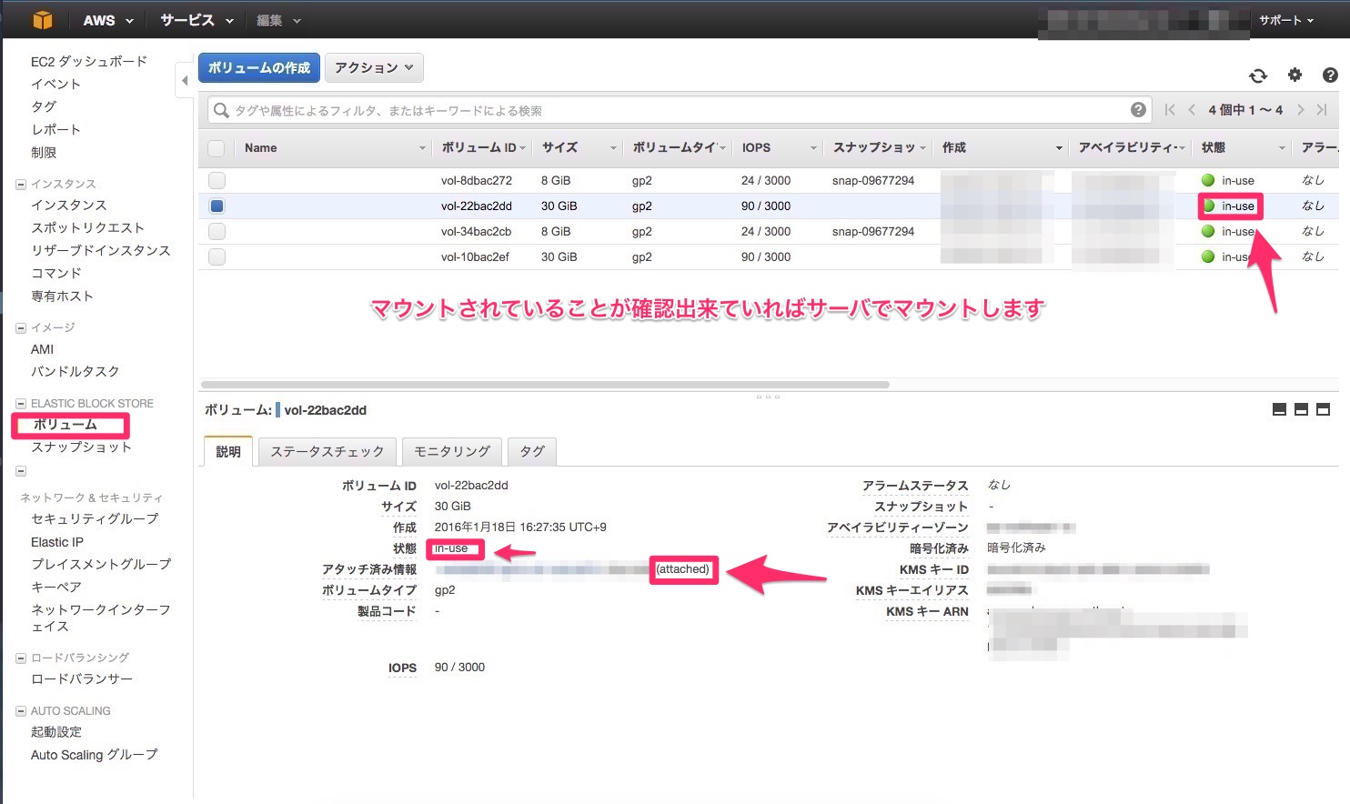 参考:http://docs.aws.amazon.com/ja_jp/AWSEC2/latest/UserGuide/ebs-using-volumes.html