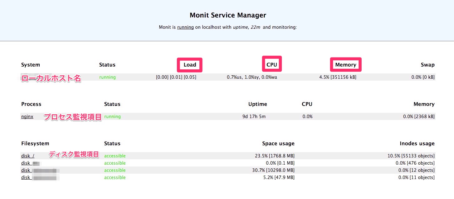 今回はmonitでシステムリソース「CPU ロアベ メモリー ディスク」の監視方法をまとめます。