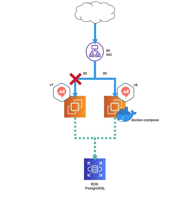 アクセス制限もIP制限しているのでNginxの細かい設定は不必要。あとはRDSなのでターゲットグループから新インスタンスに向き先を変更するだけで移行完了となります。もちろんdocker-compose.ymlからPostgreSQLの部分を削除しています。