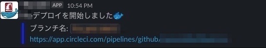 $ sh stg-deploy.sh 下記のようにブランチを指定して実行してください。 (例) sh stg-deploy.sh ブランチ名 $ sh stg-deploy.sh test-deploy { "number" : 74, "state" : "pending", "id" : "xxxxxx-xxxxx-xxxxx-xxx-xxxxxxxx", "created_at" : "2020-08-27T06:14:43.973Z" } ブランチ名/ test-deploy のStgデプロイを開始しました! #stg_deployで確認しましょう。 |