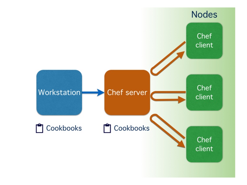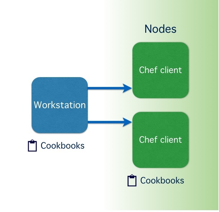 Chef-Soloは各nodeにレシピを当てるかんじ。スタンドアロン形式といって小規模とかに向いてるはず。