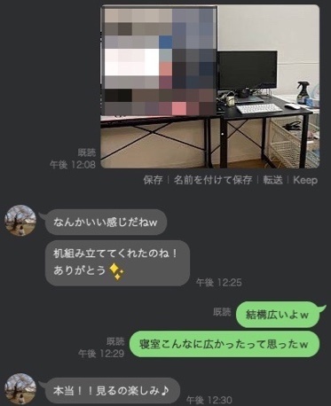 自宅は去年引っ越ししたばかりで、1LDKの新築に住んでおり、リビングは12畳、寝室は6.2畳でございます。