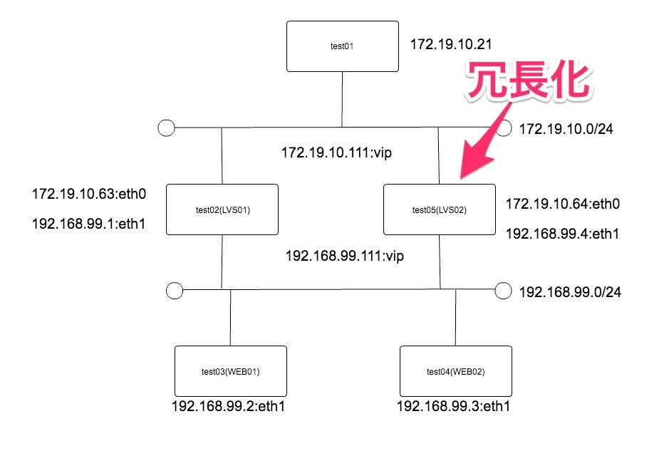 今回はLVSを2台構成にして、一台落ちても問題ないように冗長化の設定をします。