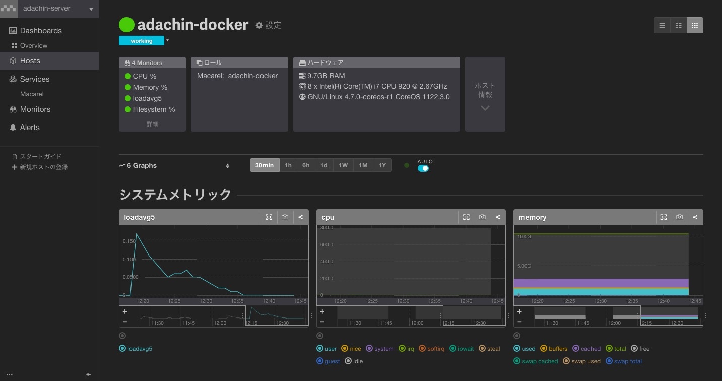 あとはmackerelでdockerコンテナ監視するようにメトリックス作って試してみよう。
