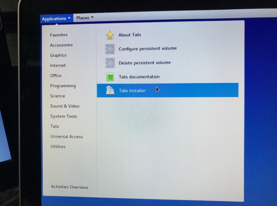 Applications ▸ Tails ▸ Tails Installer を選択する。