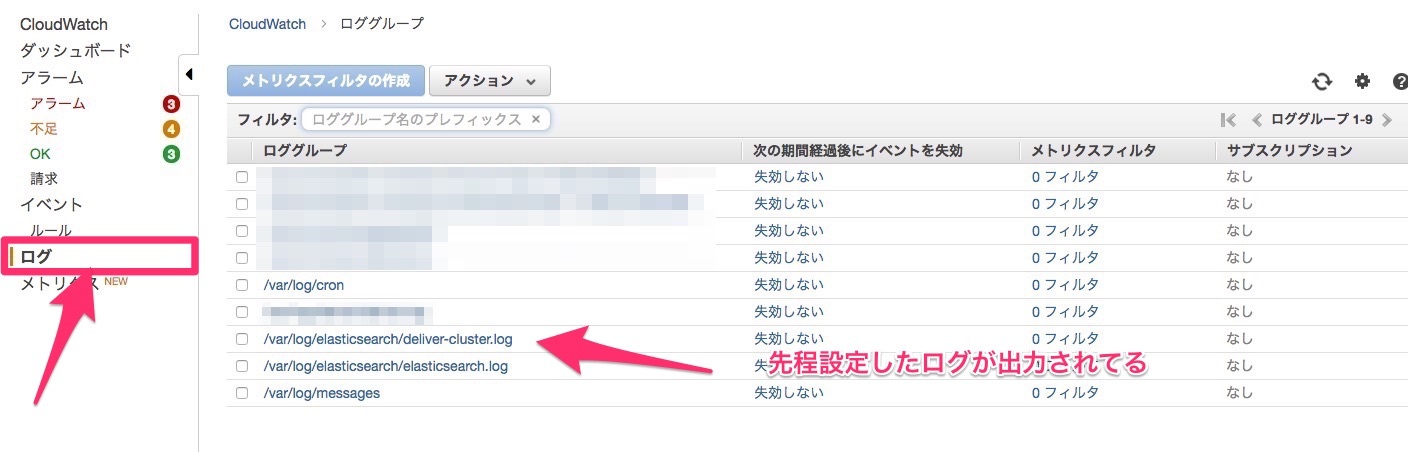 しかしこんなに簡単に設定できるのはいいですね。Amazon恐るべし!そういえばcloudwatch logsのログは/var/log/awscli.logにできるのですが、それ自体を監視するとエラーが出るので注意。(OperationalError: database is locked)みたいなエラー吐くはず。