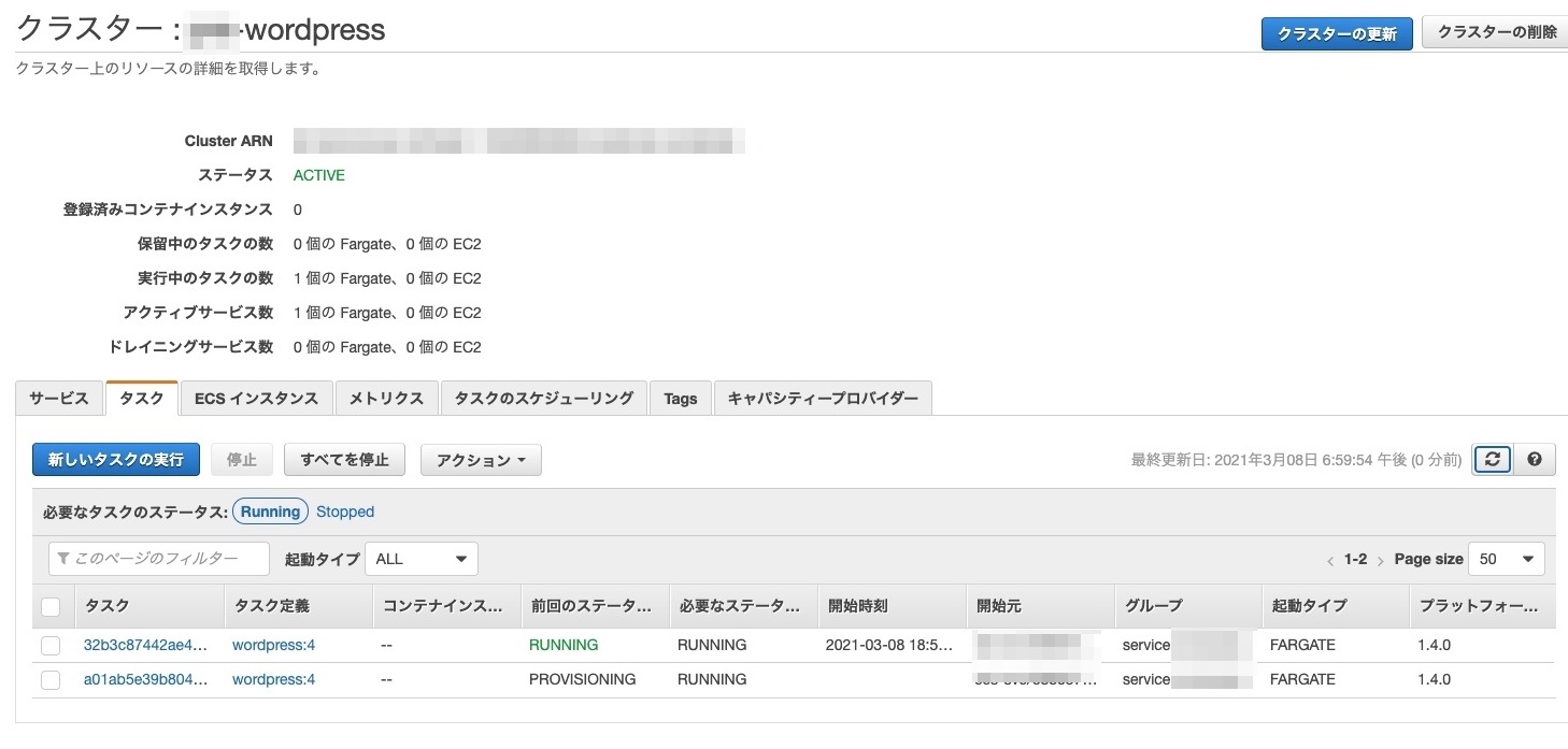- ECS/Service AutoScaling 設定 (タスクの最大数2)