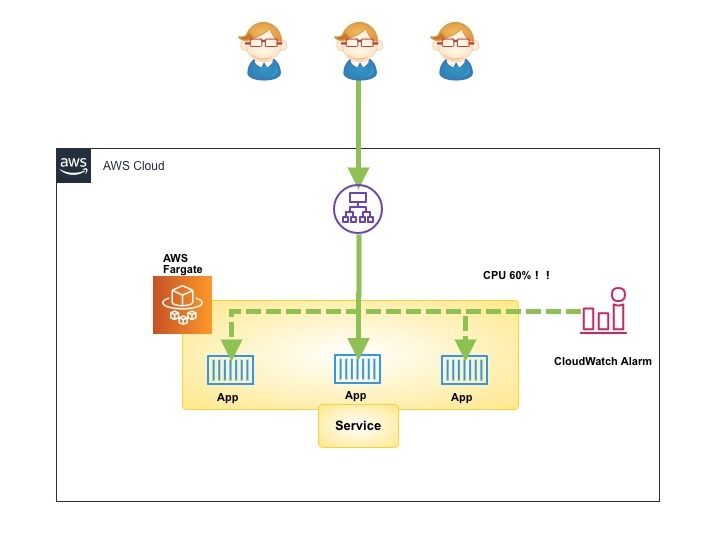 ECS/FargateでAutoScale試してみたんだけど、なんて便利なの!!CloudWatchAlarmと連携してCPUメトリクスでスケールイン/アウトするだけだった。Terraform化もサクッと。後でブログ書こう📖