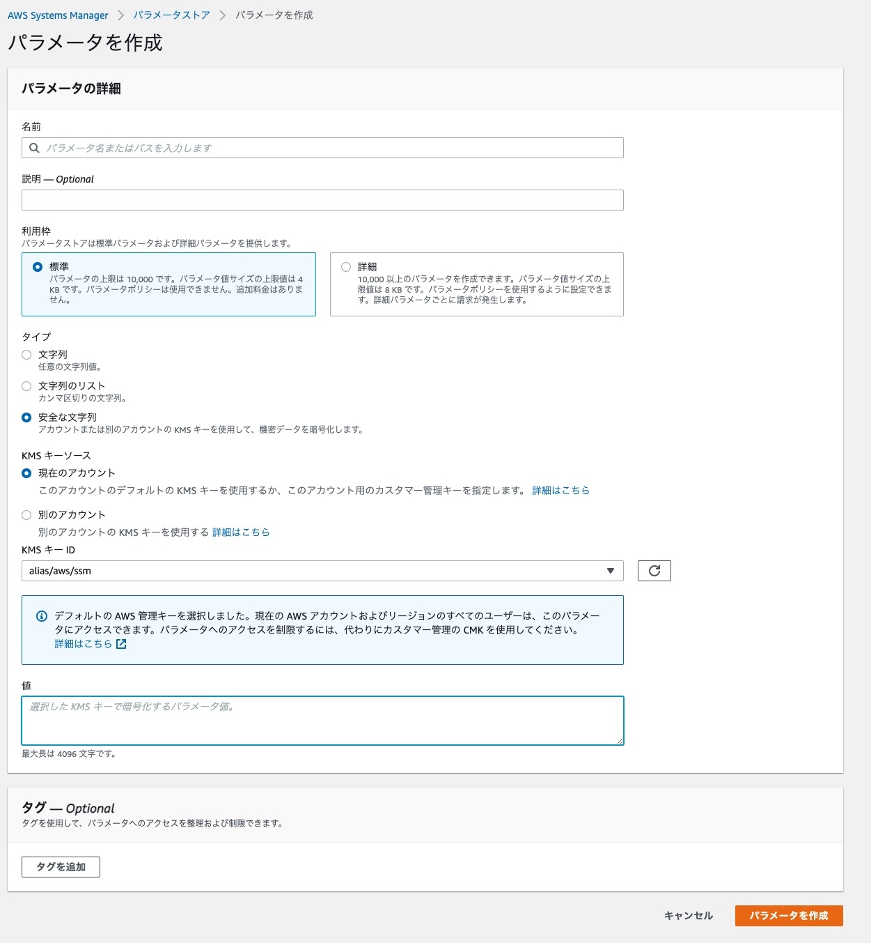 前回はECS/Fargate + EFSでWordPressの構築でハマったことをブログしましたが、今回はStg、本番環境にデプロイできるように実装したのでブログします。答えを言ってしまうとCircleCIとAWS CodeBuildを組み合わせれば可能です。ちなみに自分はCodeBuildを触ったことがなかったので非常にお勉強になりました。まずはSystem Managerの設定から行いましょう。