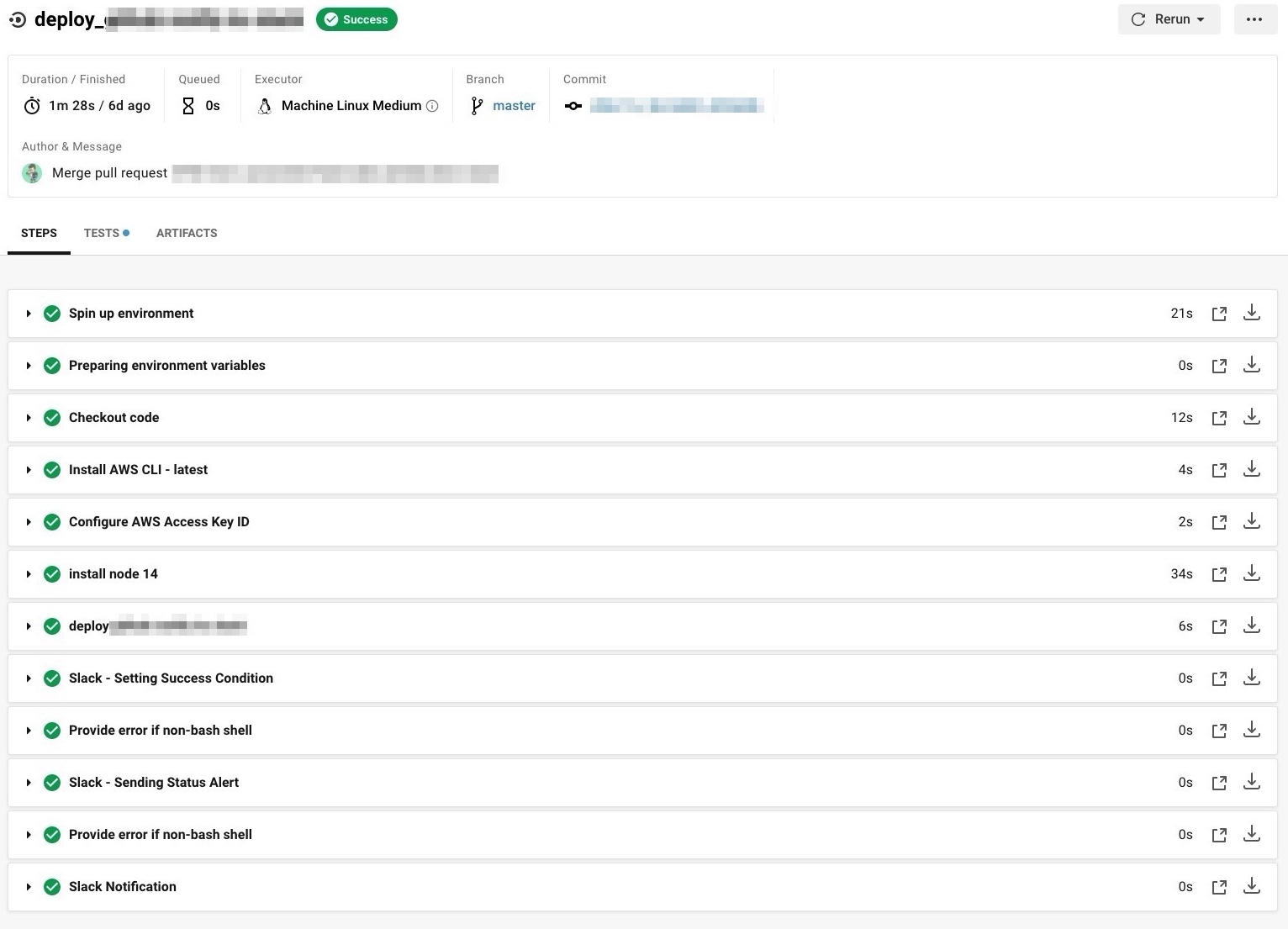 今回は Orbsの aws-cli@2.0.0 コンテナを利用しました。Orbsを使えばaws-cliをわざわざインストールしなくて済みます。masterマージで nodejs をインストール、 npm install 、zipコマンドでの圧縮、aws-cliでデプロイで完了でございます。