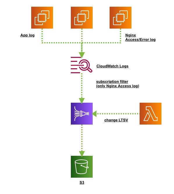 - CloudWatch Logs(subscription filter)