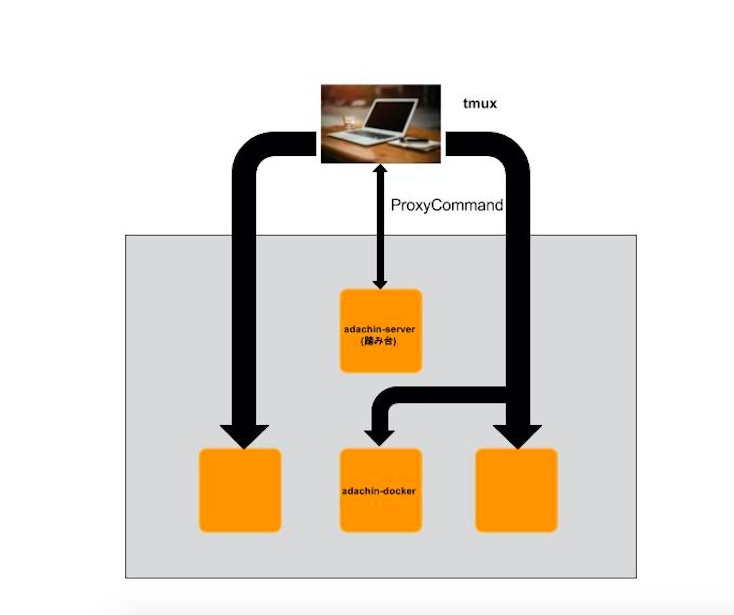 もともと、tmuxを使いこなしている自分は踏み台にtmuxを貼って、