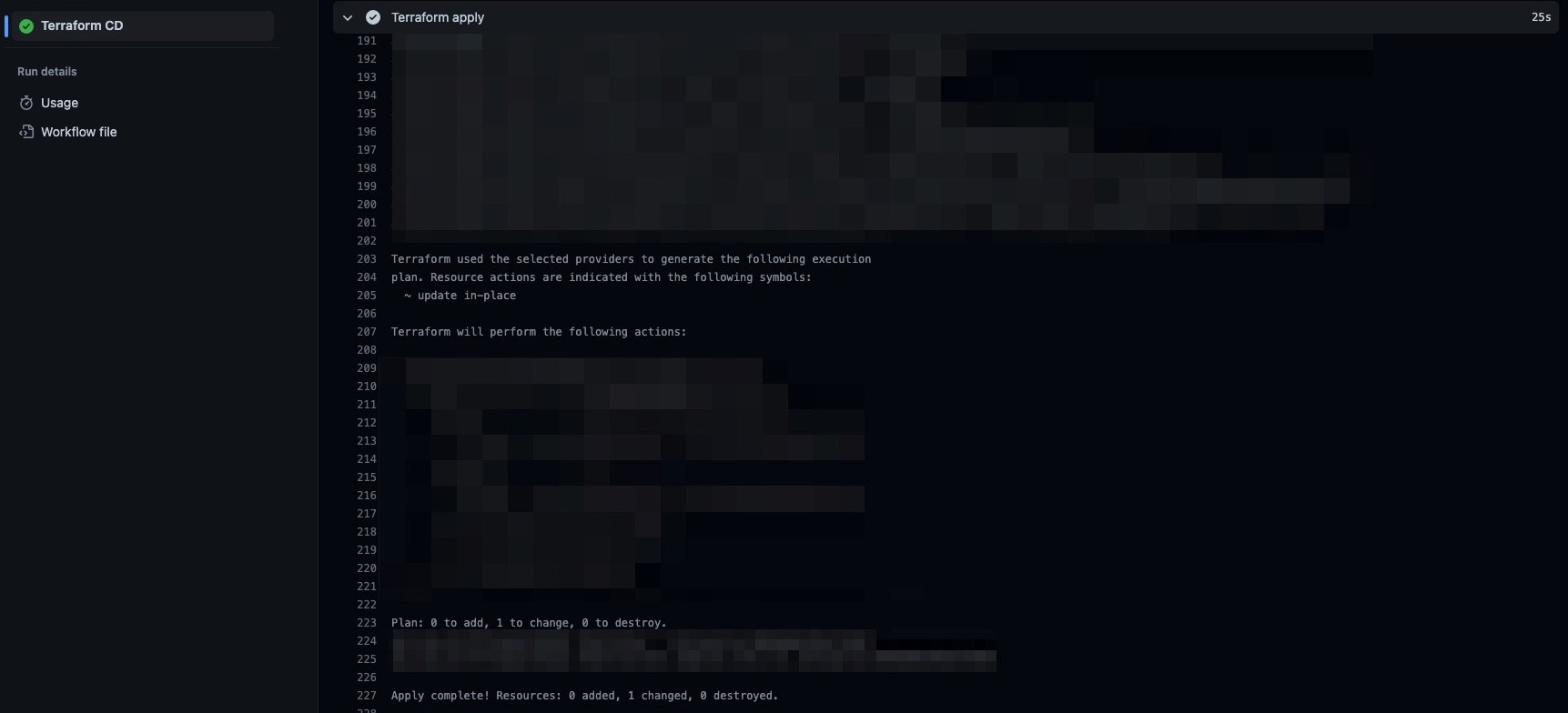 name: Terraform CD on: push: branches: [master] paths: - "terraform/**" env: SLACK_WEBHOOK: ${{ secrets.SLACK_WEBHOOK_URL }} SLACK_USERNAME: terraform-cd SLACK_CHANNEL: notify_ci SLACK_ICON: https://avatars.githubusercontent.com/u/44036562?s=280&v=4 AWS_ROLE_NAME: githubactions-oidc AWS_ROLE_SESSION_NAME: githubactions-oidc AWS_REGION: ap-northeast-1 permissions: id-token: write contents: read jobs: terraform_cd: name: Terraform CD runs-on: ubuntu-latest steps: - name: Checkout uses: actions/checkout@v3 - name: Configure AWS OIDC uses: aws-actions/configure-aws-credentials@master with: role-to-assume: arn:aws:iam::${{ secrets.AWS_ACCOUNT_ID }}:role/${{ env.AWS_ROLE_NAME }} role-session-name: ${{ env.AWS_ROLE_SESSION_NAME }} aws-region: ${{ env.AWS_REGION }} - name: Setup Terraform uses: hashicorp/setup-terraform@v2 with: terraform_version: 1.3.0 - name: Terraform init id: init working-directory: ./terraform run: terraform init - name: Terraform apply id: apply working-directory: ./terraform run: terraform apply -auto-approve -no-color - name: Slack Success if: ${{ success() }} uses: rtCamp/action-slack-notify@v2 env: SLACK_TITLE: terraform apply Success SLACK_COLOR: good - name: Slack Failure if: ${{ failure() }} uses: rtCamp/action-slack-notify@v2 env: SLACK_TITLE: terraform apply Failure SLACK_COLOR: danger |