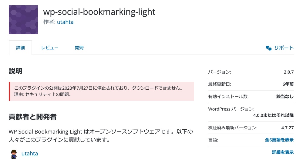 なんとWP Social Bookmarking Lightという長年愛用していたSNSシェアボタンプラグインが6年前からアップデートされていないという…しかも今はダウンロードできなくなっていました。残念!ということで、代替案として「AddToAny」を利用しました。(誰か開発してくれ!自分か!?)
