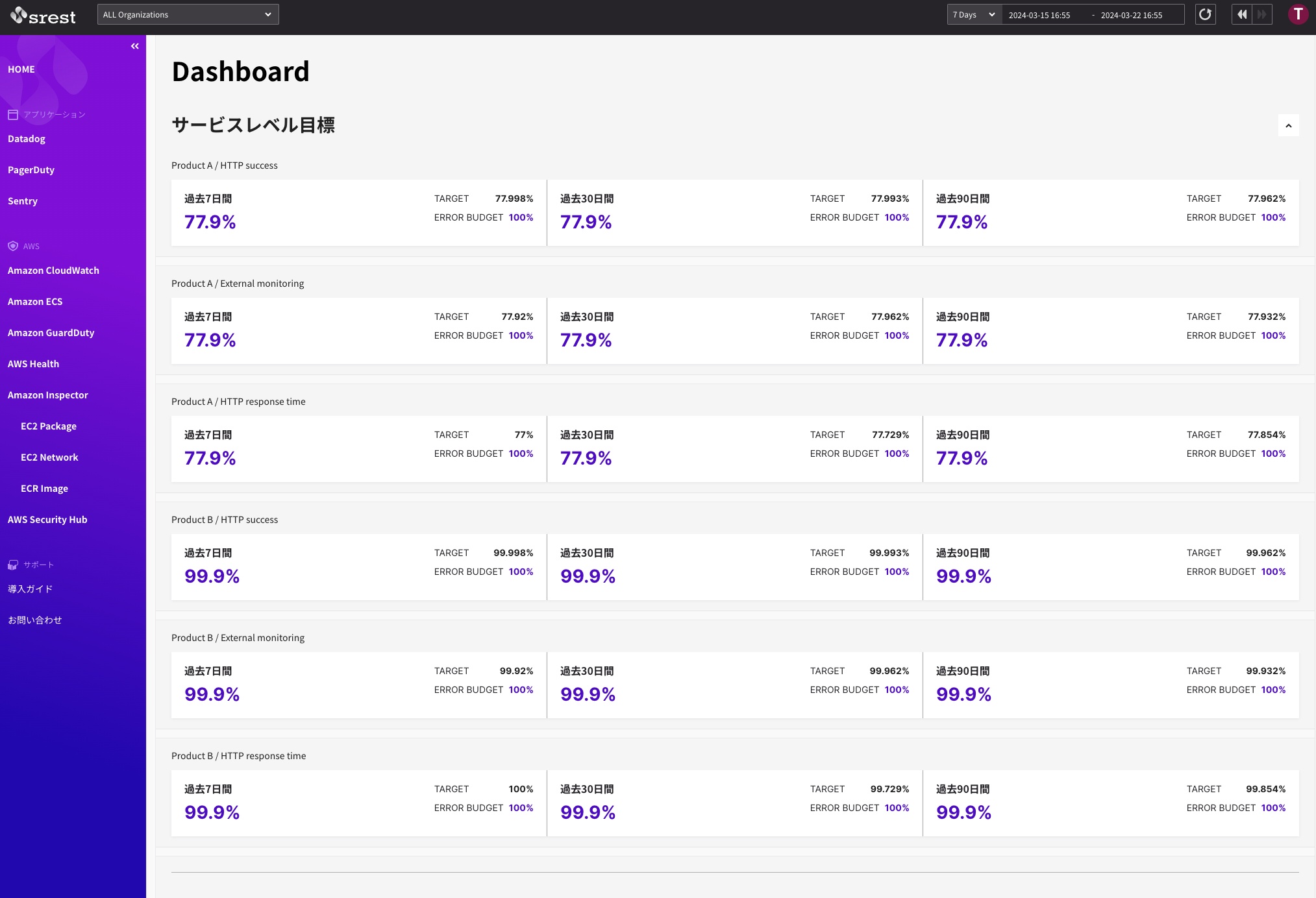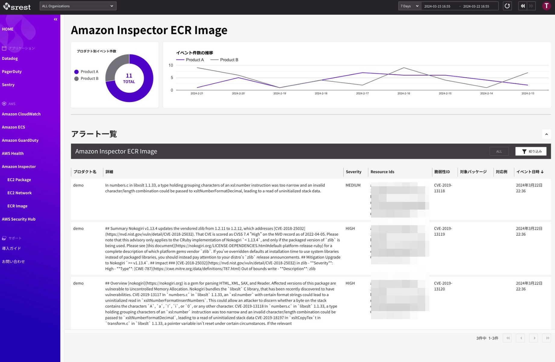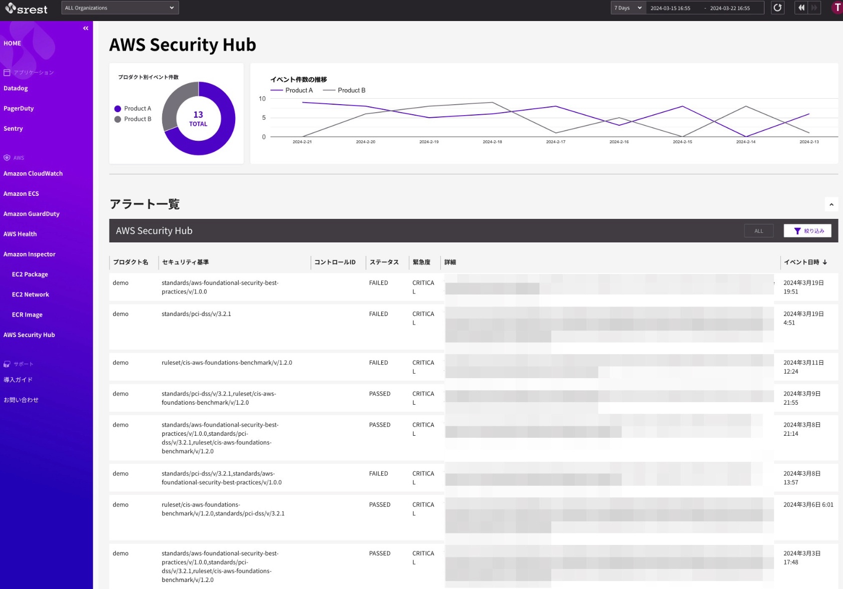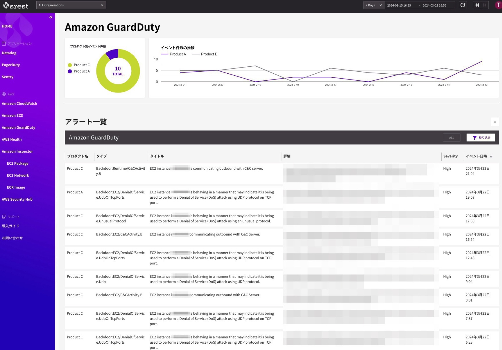 「srest」を利用することで、各アプリケーションやAWSとの連携により、ダッシュボードの設定に要する手間を省くことができる点が大きな利点だと感じました。さらに、連携したサービスが一元化されているため、複数のSaaSを横断しての運用が不要になるのと、イベントログを見逃すことなく迅速に対応できそうです。