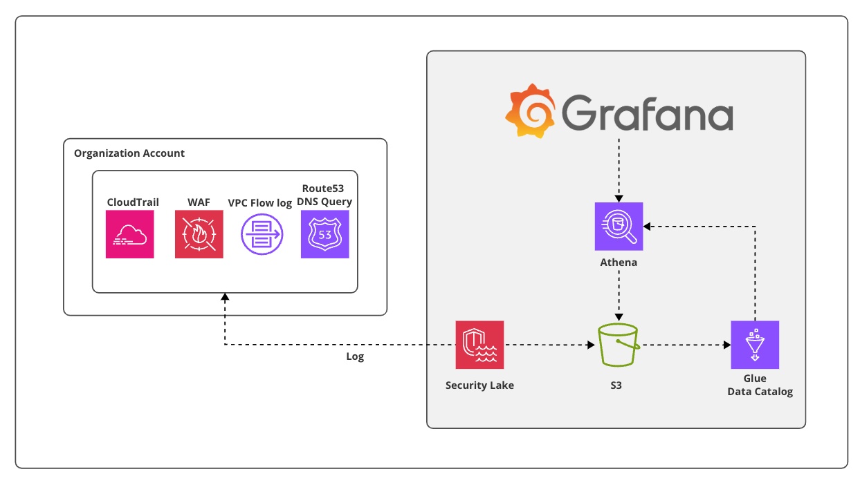 フルマネージド型のセキュリティデータレイクサービスで、AWSから収集したセキュリティデータ(ログやイベントデータ)を専用のデータレイクに自動で一元管理ができます。また、Open Cybersecurity Schema Framework (OCSF)、Apache Parquetに基づいてデータを標準化しているため、さまざまな分析ツールやセキュリティアプリケーションとの互換性が向上し、内部監査のニーズにも対応しやすくなります。基本、S3にログが格納され、GlueとAthenaを利用してGrafanaで分析するのがベストだと思うので、まずはTerraform化していきましょう。