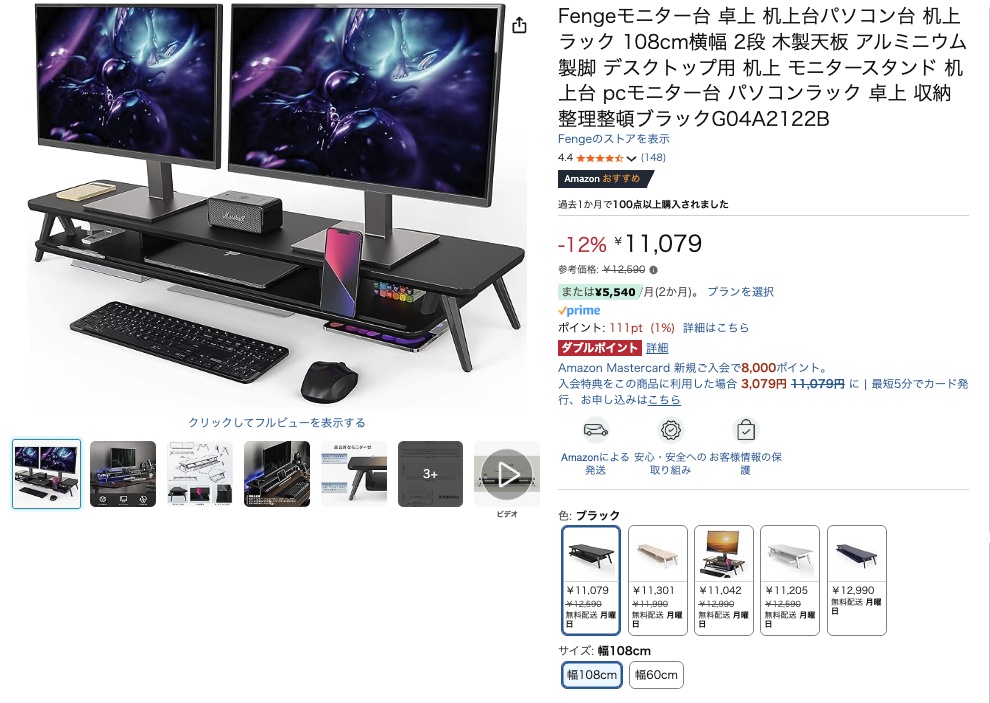 さらに、デスク上のスペースを有効活用できるため、モバイルモニターやiPhoneなどのガジェット類を立体的に配置できる点も大きなポイントです。必要なものを手の届く範囲に整理できるので、デスク周りの快適さが格段に上がります。価格も約1万円とコスパがよく、手軽にデスク環境をグレードアップできるアイテムですのでぜひ買ってみてください。