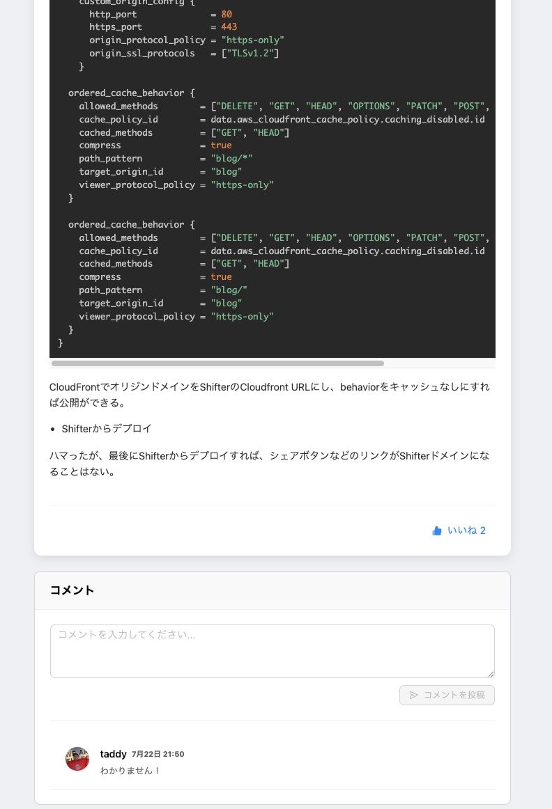 同僚の@kouzyunJaに会社のコーポレートサイトのリニューアル作業をしてもらい、自分は見守るだけだったが、ダウンタイムなしで移行できたので、非常に素晴らしかった。そしてCMが公開されると経験上、サービスやコーポレートサイトもアクセス量が増えるため、Shifterに移行して良かったと改めて感じる。ちなみに来週金曜日に開催される、ゆるSREでお話するのでそれもぜひ来て欲しい!