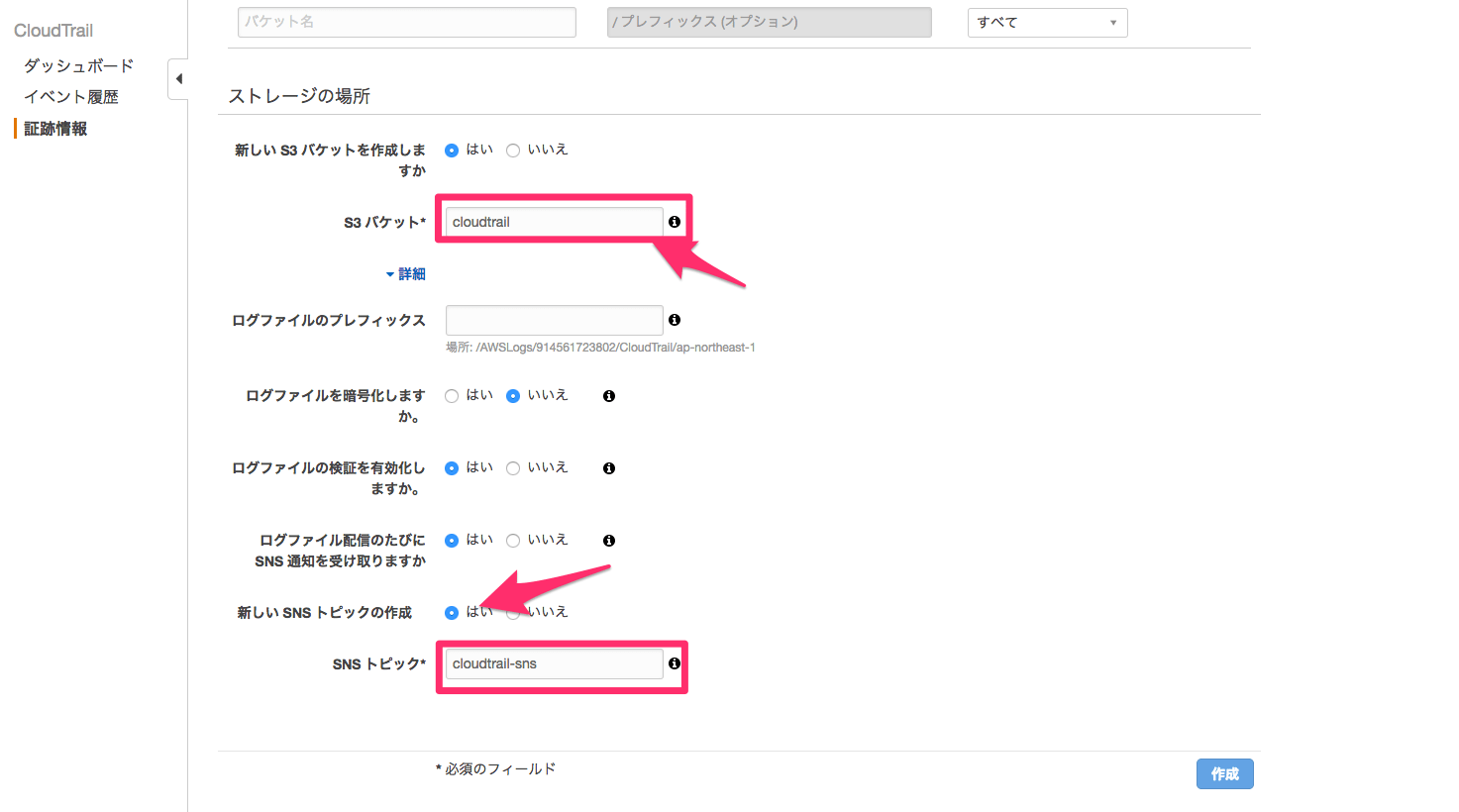 ■Setting cloudtrail