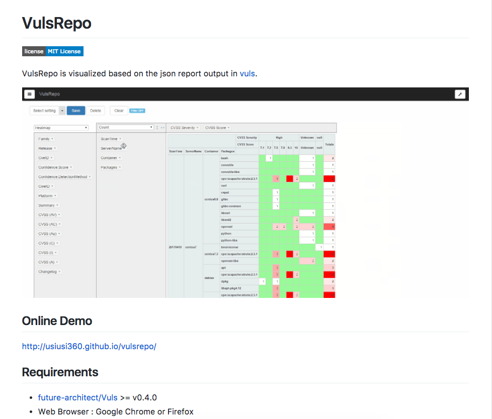 $ cd /home/vuls $ git clone https://github.com/usiusi360/vulsrepo.git |