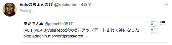最近開発者の神戸さん(Vulsのちょんまげ)にリツイートされまくるので、
