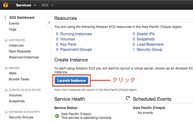 で、EC2をクリックしたらLanch Instanceをクリック(二回目)