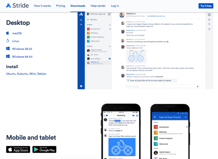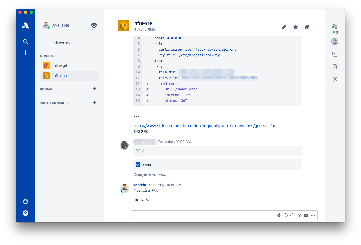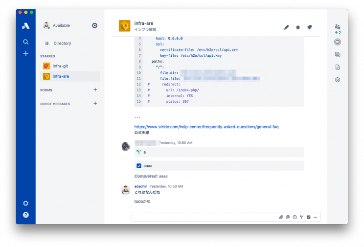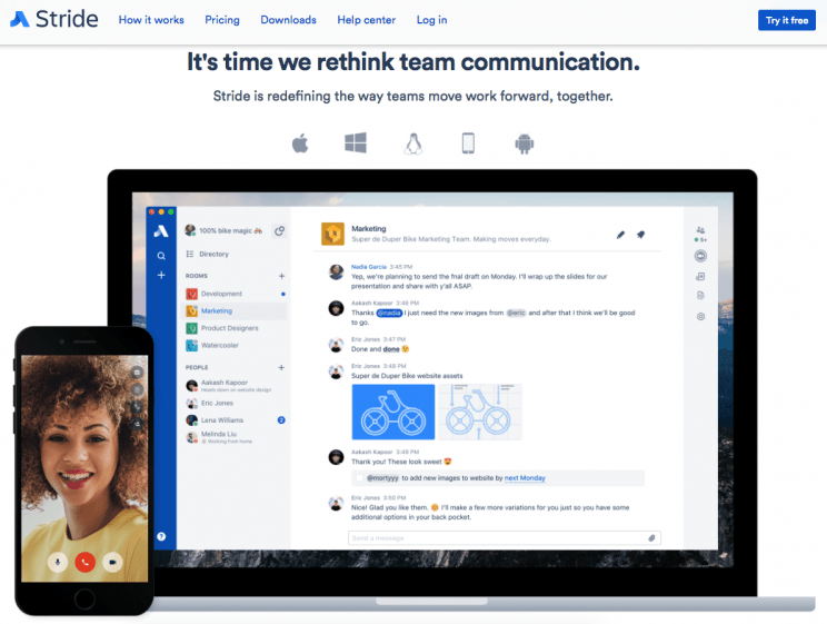 Strideはグループチャットやチャットやビデオ会議、チャットの内容をタスクとしてメンバーにアサインする機能など、
