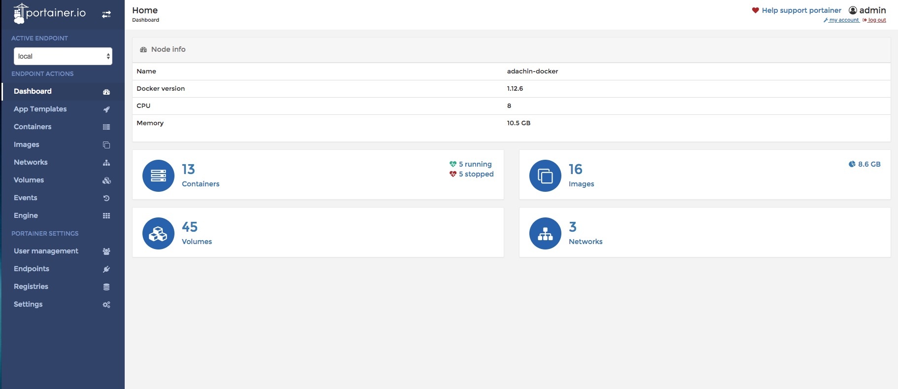 # docker run -d -p 8080:9000 -v /var/run/docker.sock:/var/run/docker.sock -v portainer_data:/data portainer/portainer Unable to find image 'portainer/portainer:latest' locally latest: Pulling from portainer/portainer d1e017099d17: Pull complete a23d8e6a837b: Pull complete Digest: sha256:ea22d362cba64fe0aec1641534812fef84e09e21bef05a2c761f7c7ec8d7185e Status: Downloaded newer image for portainer/portainer:latest 1111e6935f164b62f1c638c92ea02f4ec39703696e62a242b4d839957dc69954 |