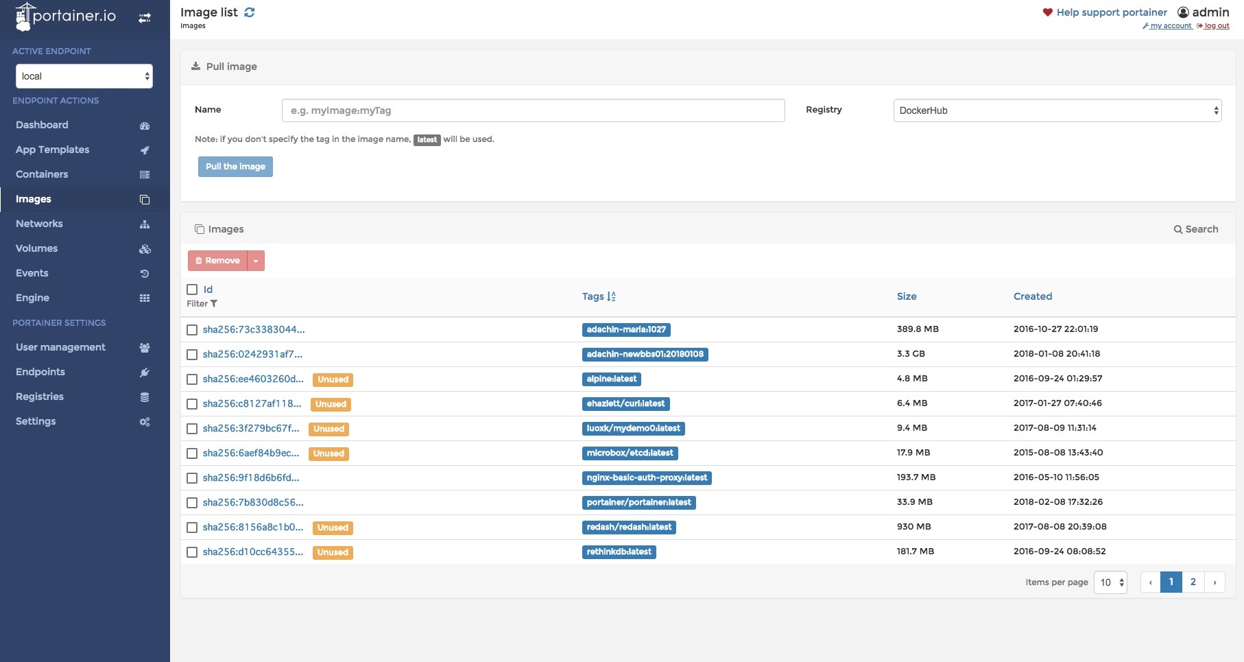 # docker ps | grep portainer ce6555fc812a portainer/portainer "/portainer" About a minute ago Up About a minute 0.0.0.0:8080->9000/tcp nauseous_engelbart # docker images | grep portainer portainer/portainer latest 7b830d8c5636 9 days ago 33.86 MB |