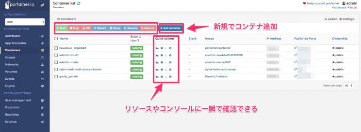基本的にshipyardとあまり変わらず、dockerホストをブラウザから操作するための軽量な管理ツール。
