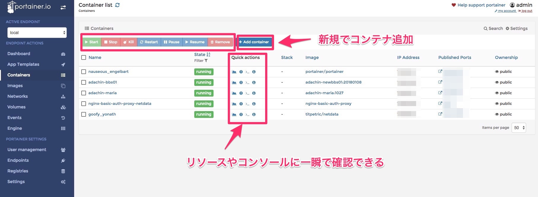 この際個人で使ってるdockeサーバ(web ui)をshipyardからPortainerに移行してみました。