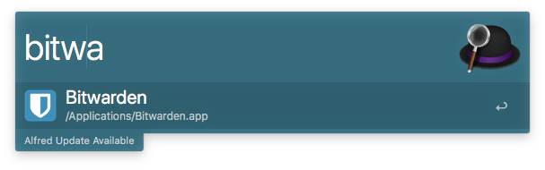$ brew cask install bitwarden ==> Satisfying dependencies ==> Downloading https://github.com/bitwarden/desktop/releases/download/v0.0.6/bitwarden-0.0.6-mac.zip ######################################################################## 100.0% ==> Verifying checksum for Cask bitwarden ==> Installing Cask bitwarden ==> Moving App 'Bitwarden.app' to '/Applications/Bitwarden.app'. ? bitwarden was successfully installed! |