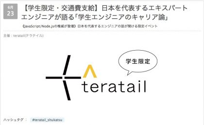今回は久しぶりのイベント!!エンジニアなりたい!!今後の未来がようわか … 続きを読む [2018/6/23][teratail][就活]日本を代表するエキスパートエンジニアが語る「学生エンジニアのキャリア論」のQ&Aに出てきました!!