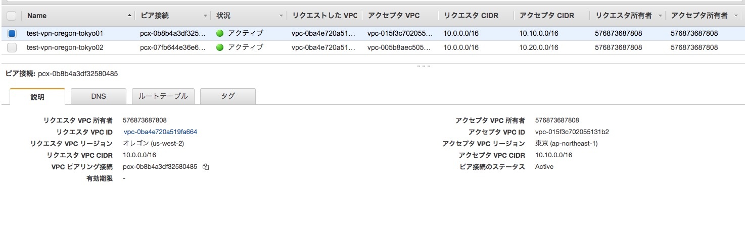 ■オレゴンリージョンと東京リージョンをピアリング接続