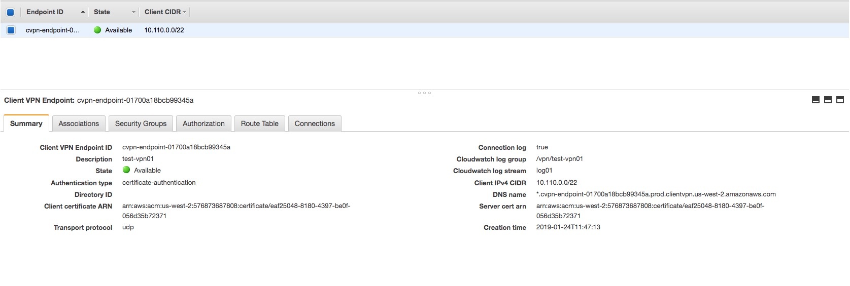 OpenVPNとか構築時に結構大変な思いをする上、AWSの場合はなんて楽なのか!なかなかセキュアな環境と運用が実現できそう。東京リージョンそろそろかな?ちなみに既存のサーバ証明書を使って、新規VPNを構築して、設定等変えることなくVPNができるか検証したところ可能でした。
